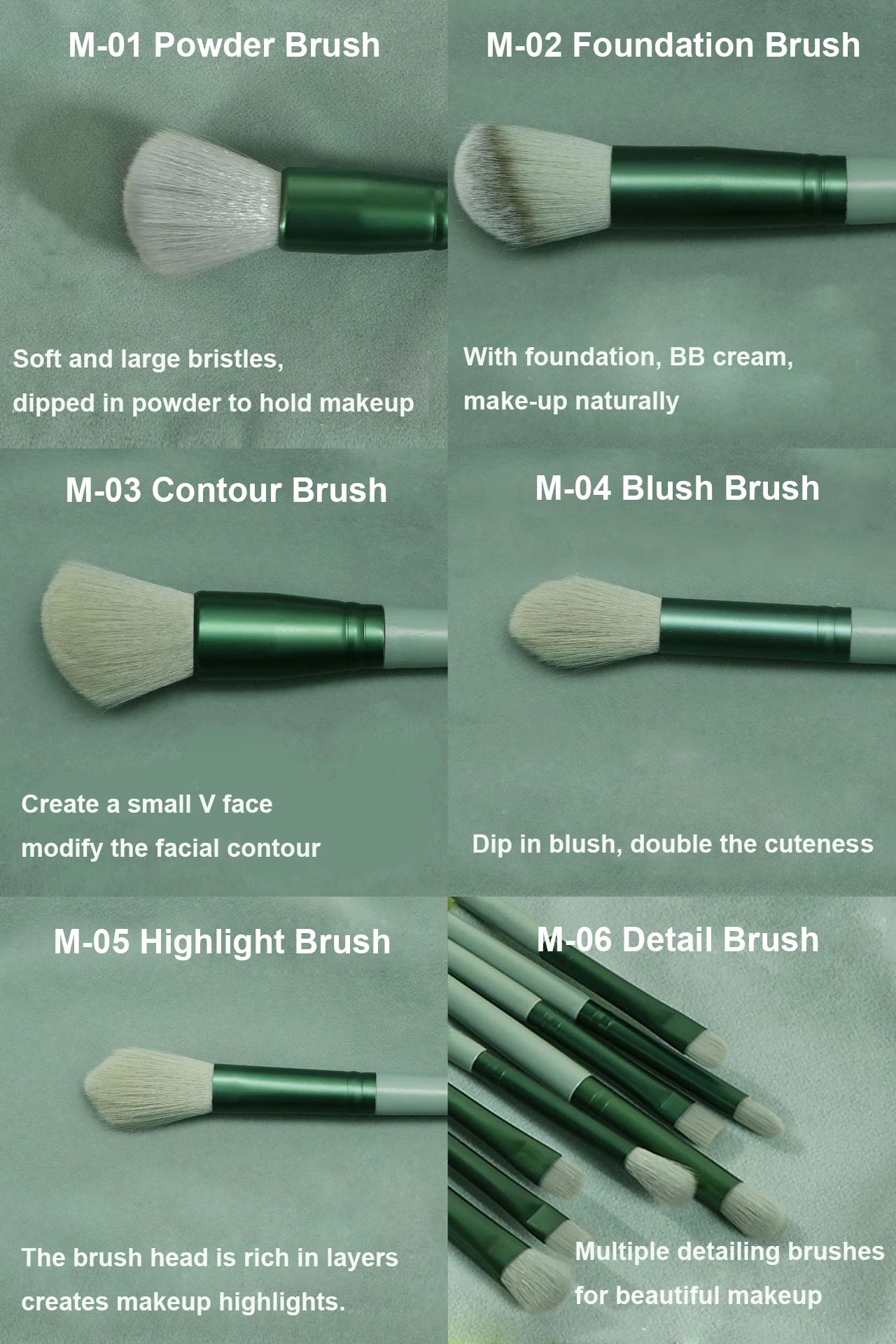• Eyeshadow Blush Beauty :The brushes in this set are perfect for creating a variety of makeup looks, from subtle to bold.